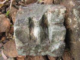 | Description / विवरण | Fragment of architectural member has three mouldings.Looks like pati,kani and vasanta of a temple base.In the recess between pata and kani and Vasanta the lime plastering is visible in the from of residue. |