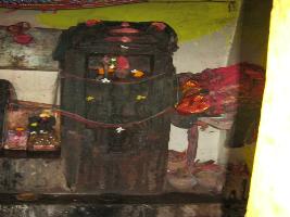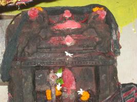 | Description / विवरण | The deity is standing carrying a trident and other hand she carrying a damburu. It stands on a demon. The demon exists on a pedestal. The statue is carved in a riche shaped as a temple. |