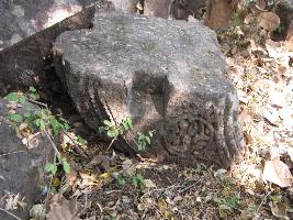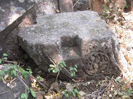 | Description / विवरण | The huge stone block bearing the minute carving on one side.Store piece is partically burried.It has the carving of lotus petal s,beaded designs,Kutila etc in receding order.Other sides are plain. One side has arch like surface. |