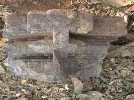 | Description / विवरण | Fragment of architectural member has 3 steps of horizontal moulding on it. A vertical band is concets the moulding from the design it seems to be a corner moulding stone of a temple. |
