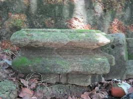 | Description / विवरण | It is lying under a tree, with two horizontal mouldings above a vertical band with two sides plain. It is obviously a part of temple wall design of arch design and two side designed other two side kept plain for joint in the wall. |