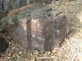 | Description / विवरण | The stone block is part of a pillar -It having gradually tilted ratha like projections.On the upper surface two long grooves for socketing are visible. |