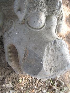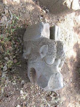 | Description / विवरण | The makara pranala has a chute running through its face.Two bulging eyes and prominent. Ears are visible along with the decorative mane.Two legs are visible.lower jaw is broken .The trunk above the mouth is also broken. |