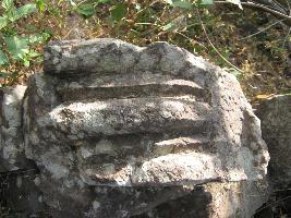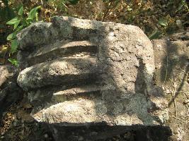 | Description / विवरण | The stone has moulding in sloppy order.Among there mouldings 3 are rounded and in between them one angled moulding is visible. It is part of an amalaka. |