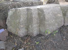 The structural element is of kumbha projection of the base of a temple. Probablly it was placed on the corner.Two conical grooved inpressions are visible, which were used for decoration purpose.