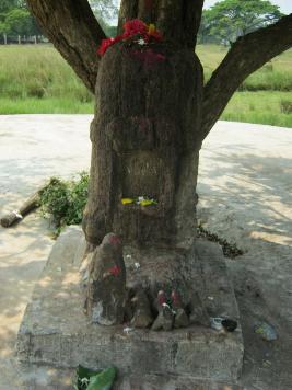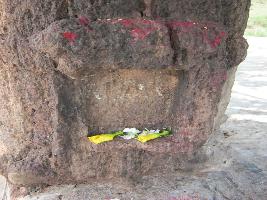 | Description / विवरण | It s a votive stupa found at the end of the village on ground near a cemented mandapa under a sahada tree. On the front side of the stupa a small niche on the stupa is engraved and its right side is eroded and in the nich no sculpture is seen. |