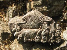 | Description / विवरण | The fragment of pranala has a makanamukha decorations. One leg is visible along with the claw. Water comes out through small hole on the face. |