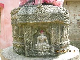 | Description / विवरण | Part of cylindrical anda of the votive stupa is well decorated having double petal lotus on lower side. Statue in padmasana is seen. |