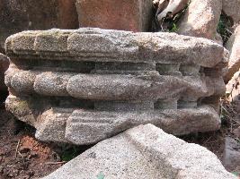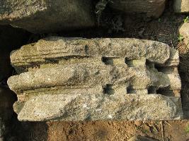 | Description / विवरण | Moulded stone. having 3 mouldings. Both side mouldings are flat and stepped in recceding order. Two shallow recesses are visible in between the mouldings. |