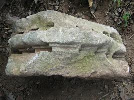 | Description / विवरण | Stone slab is a Moulded stone. having 3 mouldings. Both laterals are flat and middle is rounded. In between recesses are step like carvings. |