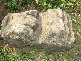 | Description / विवरण | This is a moulding stone having, vertical bar on both sides. In the middle three mouldings with horizontal recess seen. |