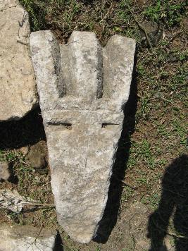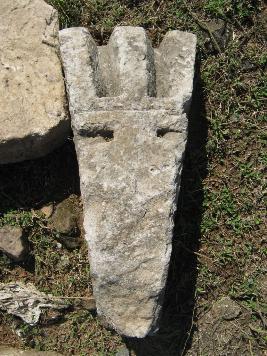 | Description / विवरण | The stone block has 3 ribbed projections. Shape of stone is conical. Two side ribs are not fully carved but the middle is fully visible. |