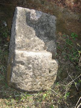 | Description / विवरण | The stone slab haS a sloppy projection and on the edge a tanku is visible, which is broken. The upper part is plain near the sloppy area. |