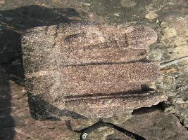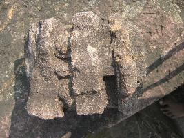 | Description / विवरण | Fragment of architectural member having the impression of crouched elephant with carvings. |
