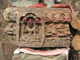 | Description / विवरण | The part of door jamb having the image of gajalaxmi in centre. Right to Gajalaxmi panel only part of a bady and two floral decorations are visible. Left to deity puspavali, shisuvali and lata vali is avaible. |