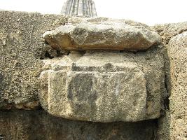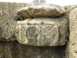 | Description / विवरण | the stone block is carved out in two stepes.Upper moulding is slighty angular in projection. Lower is almost damaged but having a sloppy top along small Tanku decoration. |