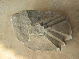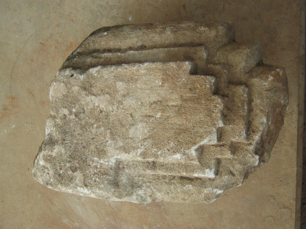 Fragment of pidha . One side has sloppy decoration along with the modification of a corner.On the borders the small tanku designs are visible.Lower is flat but has step like designs.