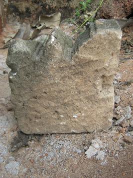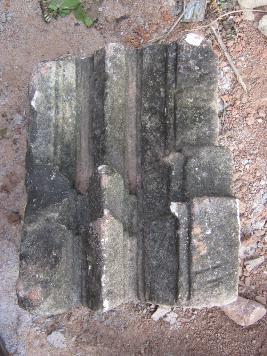 | Description / विवरण | The stone has 3 mouldings on a side surface. Lower is on flat. Amoung three middle is angular. Upper is also flat but not as lower.Two tankus are visible on the lower flat moulding. A groove is visible on the bottom of stone. |