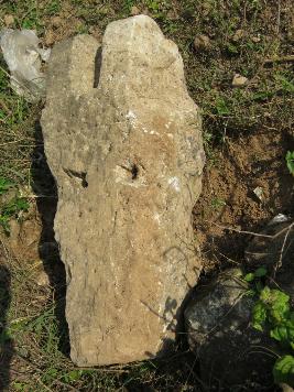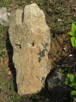 | Description / विवरण | The stone piece bears two middle ribbed projections on one end. Stone is slightly conical in shape.Two grooved marks are visible on the upper surface. |