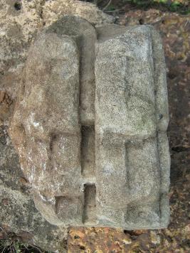 | Description / विवरण | The stone is small in dimention. Three are two flat mouldings visible along with the linear carving. Two groove marks for socketing are visible on one surface. |