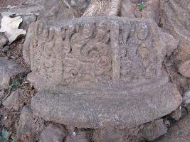 | Description / विवरण | The stone block is richly carved. It has a projection on one end circular in fashion. Floral motifs are carved out in panels bordered by vertical bands at regular interval. The flaring rounded projection is broken. |