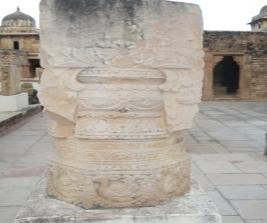 | Description / विवरण | The pillar is carved with ghat pallav, having remarkable designs on upper part. Middle round part has lotus band and octogonal part has design of birds like pigeon. The lower square part has semi circular ring with Kirti Mukh and other floral designs. |