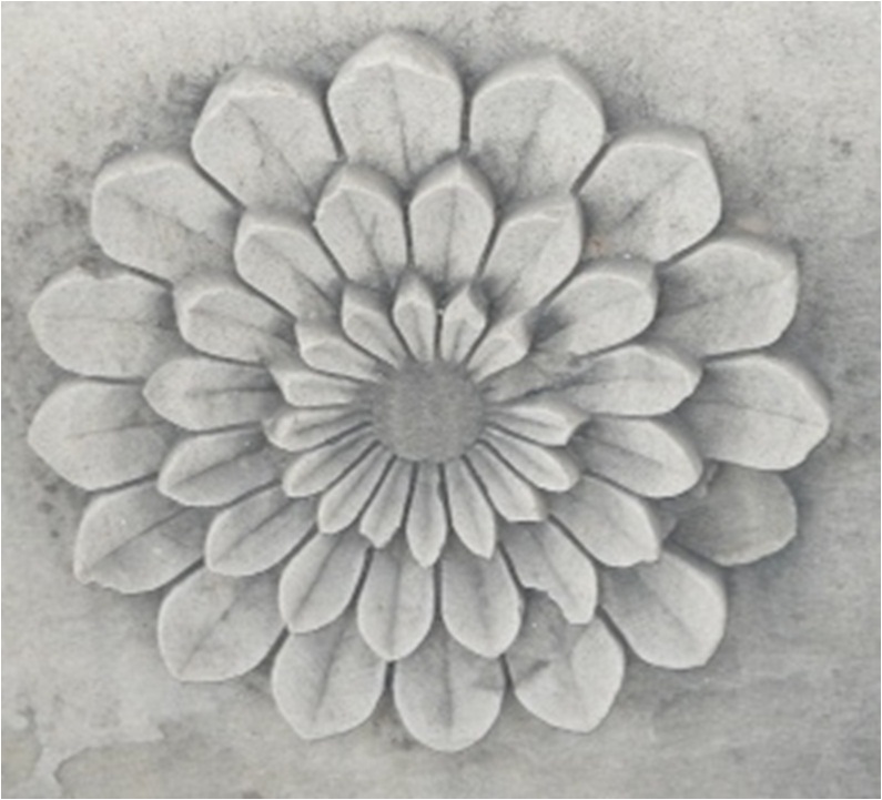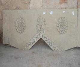 A rectangular slab having a pointed half arch carved with deep cut design, surmounted with a tree and both side full bloomed lotus.