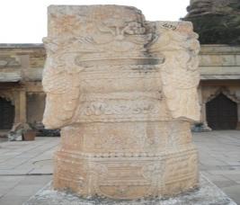 | Description / विवरण | Pillar is carved with elaborated ghat pallav on upper part, lotus band on circular part and a scroll with floral design on octogonal part. |