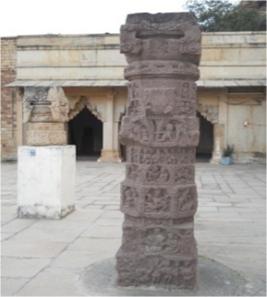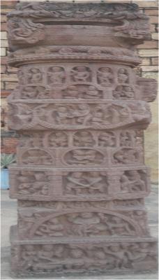 | Description / विवरण | A decorated pillar contain the figures in niches carved on its square and octogonal parts. The stories of epic are depicted such as Krishna lila or the stories related to the life of lord Krishna and other epic incidents. Which are Krishna s birth, Kaliamardan, Ashwakeshin vadh, Brattasur vadh, Aghasur vadh, Gobardhandhari Krishna, Makhan chori, Putna vadh etc. other incidents are Shiv holding Sati after death, Narasimha and other epic stories. |