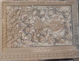 | Description / विवरण | A rectangular slab has a design of ghatt pallav and lotus creeper with floral design. |