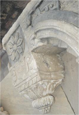 | Description / विवरण | A rectangular slab having a pointed half arch carved with deep cut design surmounted with a tree and both side full bloomed lotus. |