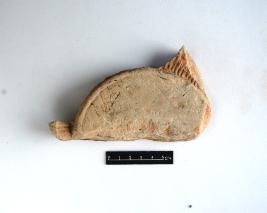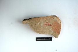 | Description / विवरण | Fragment of a chandraseela in circular shape made of sand stone,which is partially broken, it is carved with incised line. |