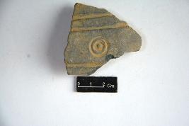| Description / विवरण | Fragment of finial, decorated with one circle and three horizontal line. |
