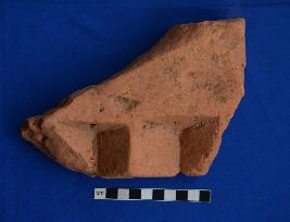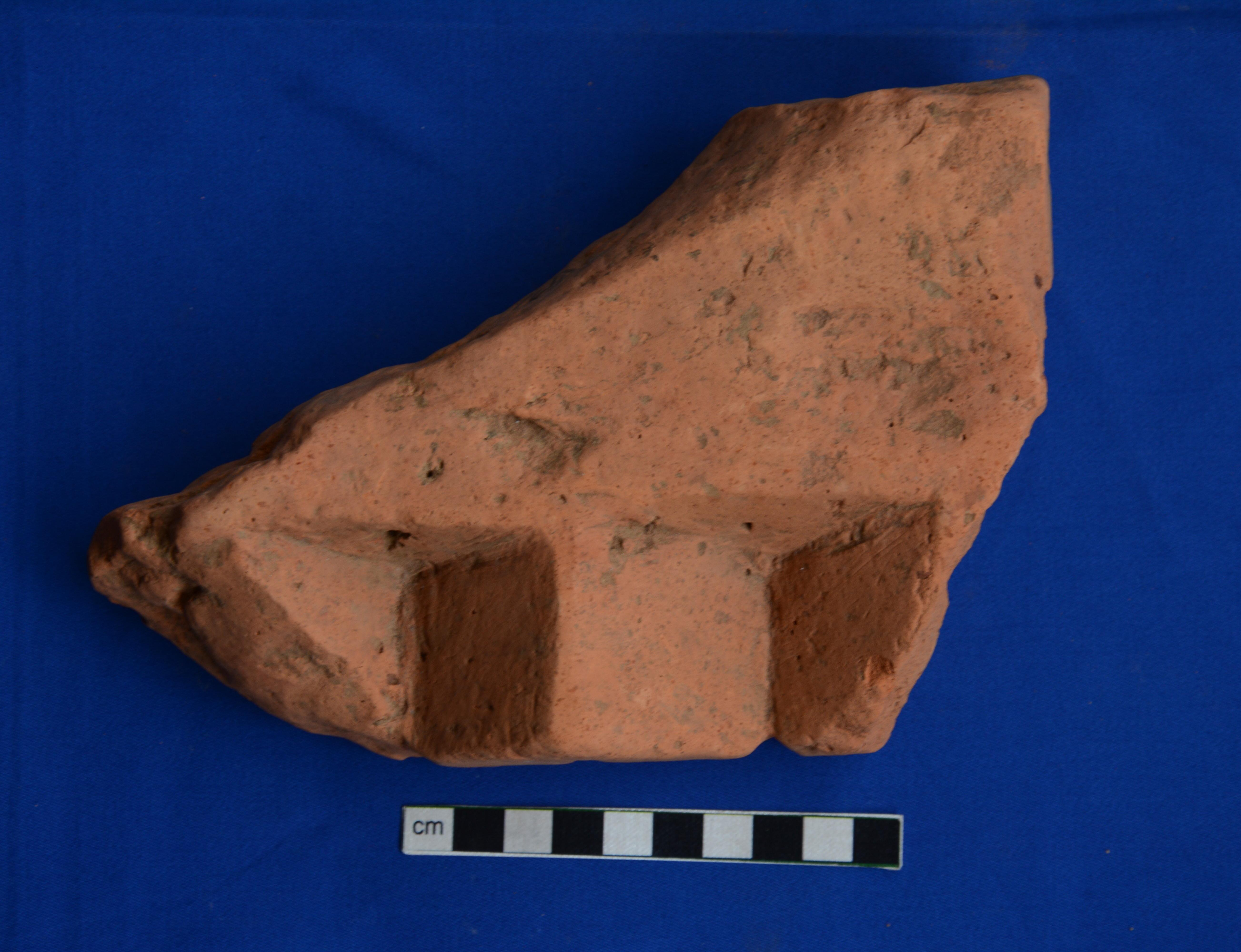 Moulded brick with pyramidal blocks on one side.