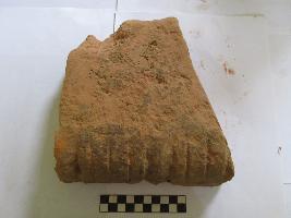 Moulded brick with regular carving lines at one side.