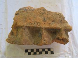 Moulded brick with pyramidal shape design on the side