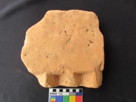Moulded brick with three blocks of rhomboidal shape at one corner. It is light pink colour