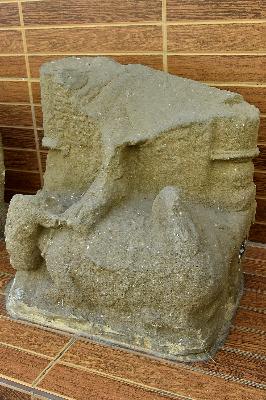 | Description / विवरण | It is a broken fragmented pilaster sculpture. The broken sculpture depicts a animal probably a bull wearing a a sort of necklace being tamed by the foot of the deity which is most probably Mahishasurmardini. One foot is clear on the back of the animal while the other foot is clearly on the lower portion of the animal but seems broken and looks like a separate foot engraved on back. |