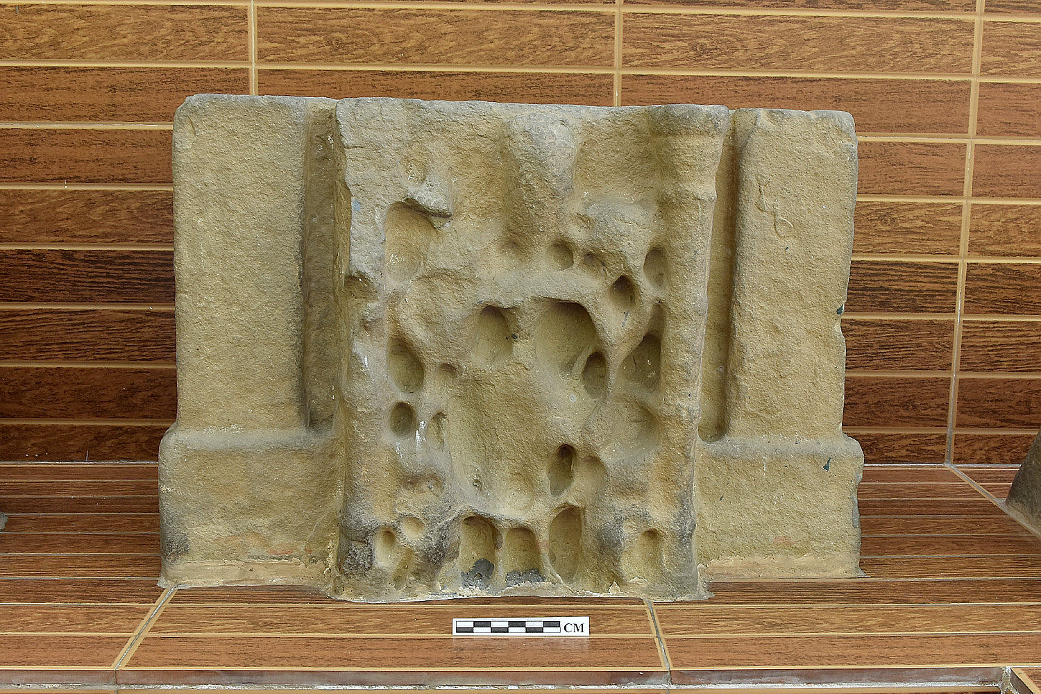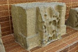 The architectural fragment is in a highly weathered condition. From the appearance, it seems probably an image of a Godly figure carved in the stone that is usually fixed in the lintel portion of the door jamb.