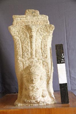 | Description / विवरण | Ornate corbel with a tenon at the top to fix to the bracket of the pillar. A boodha gana is shown at the bottom on the left side of the corbel and a parrot is shown on the right side of the corbel |