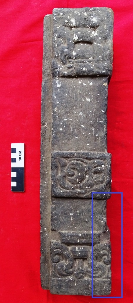 The pillar member has three decorative panels one on each end and one in middle which is decorated with Ghatpallava.