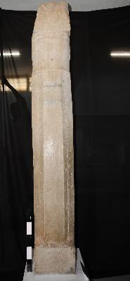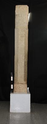 | Description / विवरण | The pillar is square at the base over which a half-lotus design is carved above a beaded border. The base of the pillar is octagonal which is capped by a bell-shaped design and surmounted by winged lions and the lion s capital. AVESANINO is the inscription in Brahmi letters. |