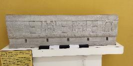 | Description / विवरण | Fragmentary frieze is carved with king Kapina s conversion to Buddhism in two parts. There are six compartments in the frieze. In one of them, towards the right, a king is shown in the royal procession. In the left side panel, he meets lord Buddha along with his retinue because of following the part of dharma. Each scene is separated by an amorous couple. There is an inscription in Ikshuvaku characters of the third century CE below. But it is defaced |