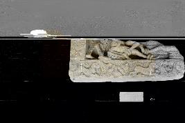 | Description / विवरण | Fragment represents the lower portion of a palm showing the legs of two seated female figures with a floral border. |