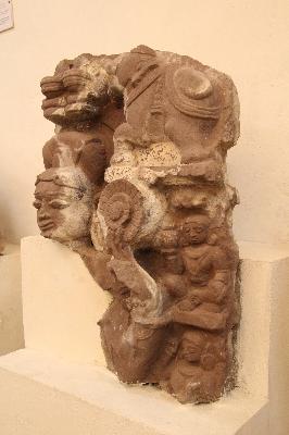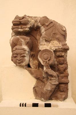 A panel is depicted with Gaja Laxmi. Only the head and a part of the left hand survive. Goddess is carrying lotus in her left hand, while an elephant stands at the left side of the deity and pouring water from the ghatas pots shown just above the head of the goddess.