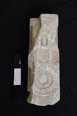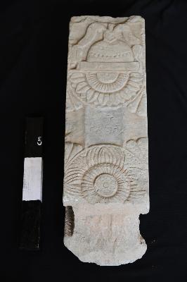 | Description / विवरण | A fragment of a railing pillar with two sockets on each side. The obverse bears a stupa with the railing in a profile. The space between the medallions courtiers on inscription. In 2nd each pre-character ao u Ta Ro Pa Sa Thi Bho. The reverse bears a Thorne around the Bodhi tree Usiksha Chaitya |