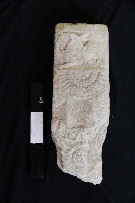 | Description / विवरण | The fragment of a railing pillar shows a mythical animal, a half-blown lotus and a full-blown lotus on one side and the other side has floral designs, a half-blown lotus and a full-blown lotus which is only partially visible. Both sides have sockets. The top and bottom portions are broken. |