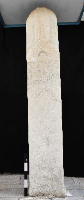 | Description / विवरण | It is an inscribed memorial pillar carved with half Lotus Medallions on all four sides and a scene of the Royal Court. It is octagonal on top whereas the remaining part is rectangular. It has a four-line inscription but the inscription is not deciphered. |
