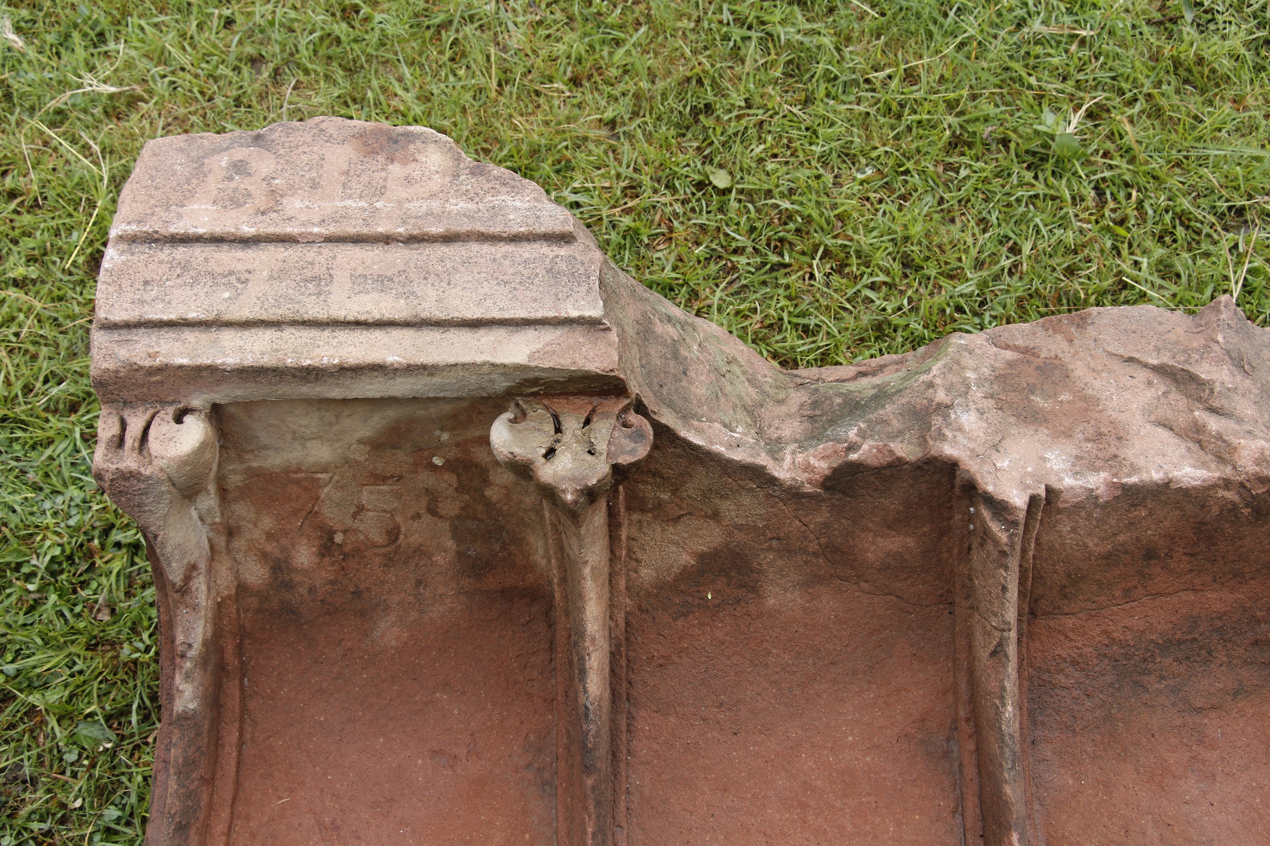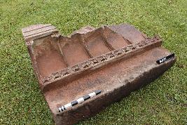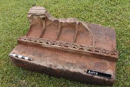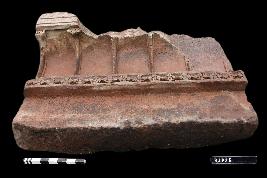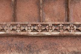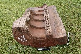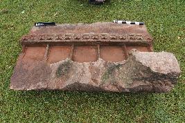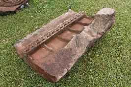 An architectural member of temple ceiling. It is curved on one side with some floral designs on one side.