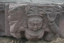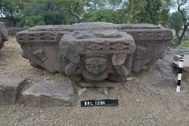 | Description / विवरण | Square-shaped bracket figure carved with four weights Kichakas and diamond and rosetts on the top. Rough execution |